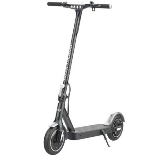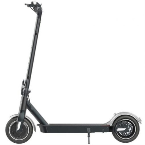 Для удобства управления на руле установлен бортовой компьютер, который отображает скорость, пройденное расстояние и уровень заряда батареи. Самокат оснащен дисковыми тормозами. Нескользящая база и эргономичные ручки обеспечивают комфортную поездку. Мощные фары позволяют безопасно передвигаться в темное время суток или в местах с плохой видимостью. Прочные 10-дюймовые колеса с надувными шинами обеспечивают надежное сцепление с дорогой и плавный ход, а водонепроницаемость класса IPX4 защищает от пыли и брызг. Прочный скутер из алюминиевого сплава выдерживает нагрузку до 130 кг. Рост пользователя может варьироваться от 130 до 200 см.