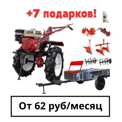 - Мотоблок оснащен колёсами 7-12 на пневмодиске с регулировкой дорожного просвета, а также с возможностью установки утяжелителей (аналог МТЗ)