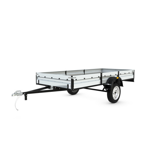 Высота борта: 30 см. V-образное дышло для компактного хранения прицепа. Высота расположения сцепного замка регулируется. Подвеска рессорно-амортизаторная, зависимая. Обеспечивает мягкий ход прицепа, удобная и недорогая в обслуживании и ремонте. Дно кузова изготовлено из бакелизированной фанеры, покрытой смоляным составом во избежание разбухания. Отличается высокой огне- и влагостойкостью, устойчивостью к износу и невосприимчивостью к плесени. Прицеп оборудован высоким металлическим каркасом для крепления и защиты грузов. Поверх каркаса можно натянуть водонепроницаемый тент, который защитит груз от осадков, грязи и пыли, а также укроет от посторонних глаз.