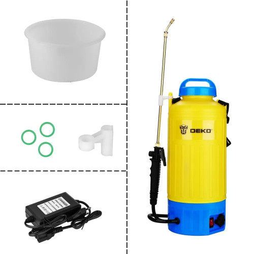 - Опрыскиватель садовый аккумуляторный DEKO DKSP11 используется для распыления воды и удобрений, дезинфекции, дезинсекции, мытья окон, машин и стен, защиты растений от вредителей.