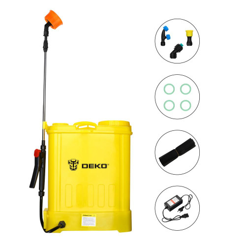 опрыскиватель; лямки съемные -2 шт.; держатель для шланга; сопло 4 шт.; пластиковая решетка-фильтр; З.У.; уплотнительные кольца 4 шт; коробка